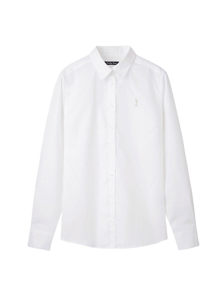 襟元はメンズシャツと同様の立ち襟仕様。